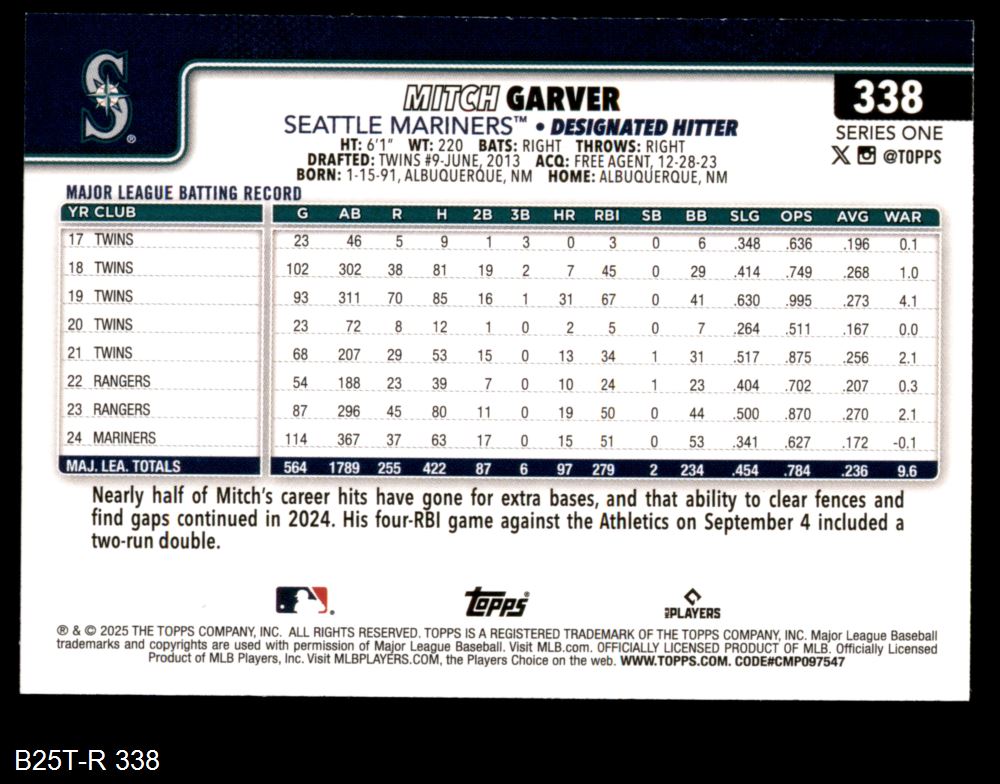 2025 Topps #338 Mitch Garver 8 - NM/MT