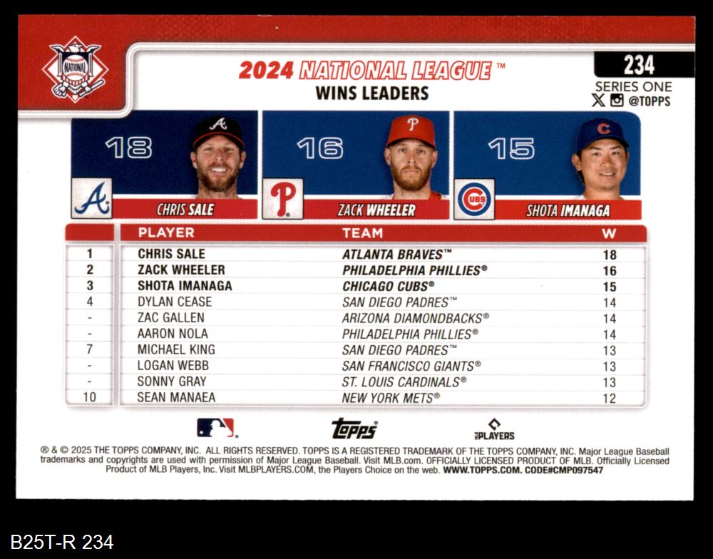 2025 Topps #234 NL Wins Leaders