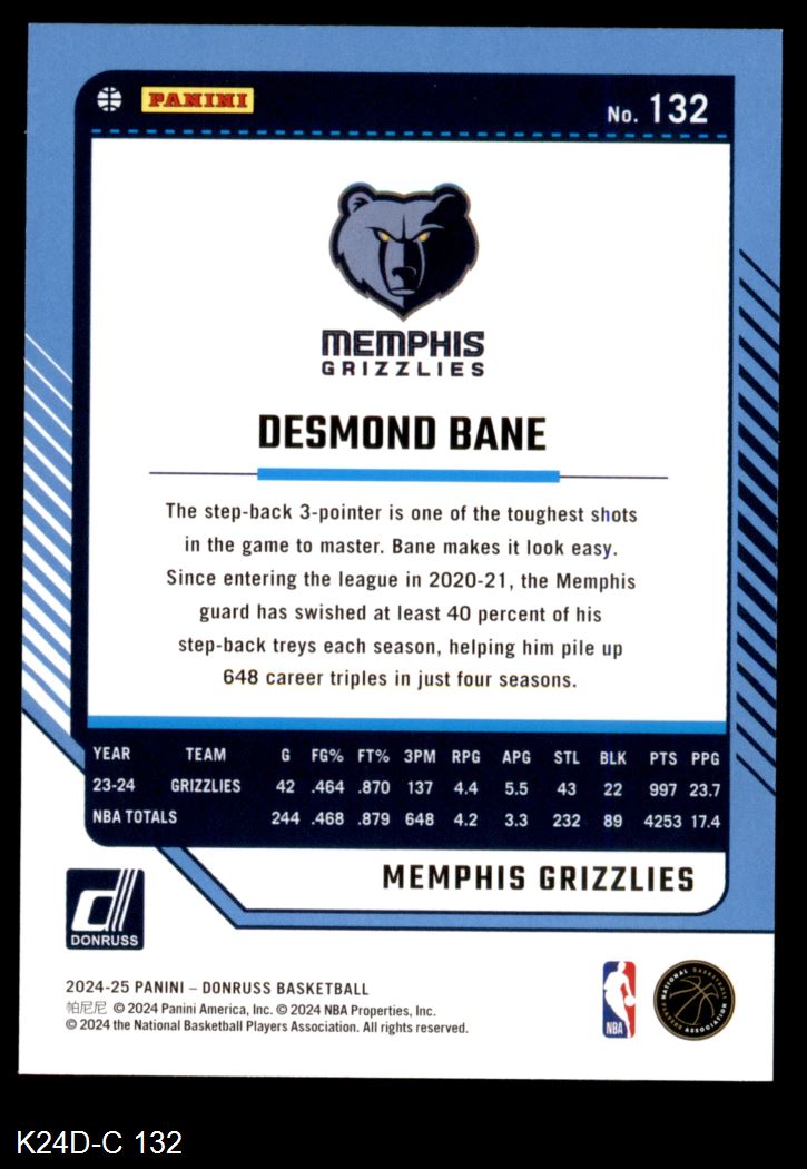 2024 Donruss #132 Desmond Bane 8 - NM/MT