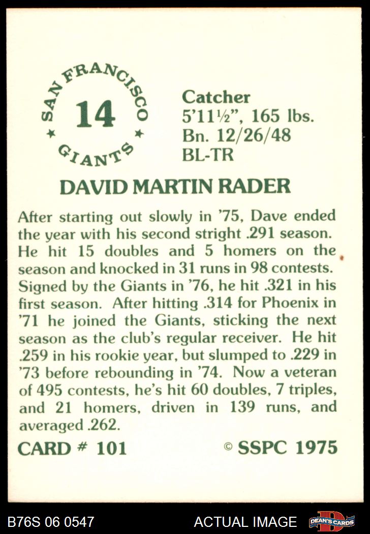 1975 SSPC #101 Dave Rader 8 - NM/MT