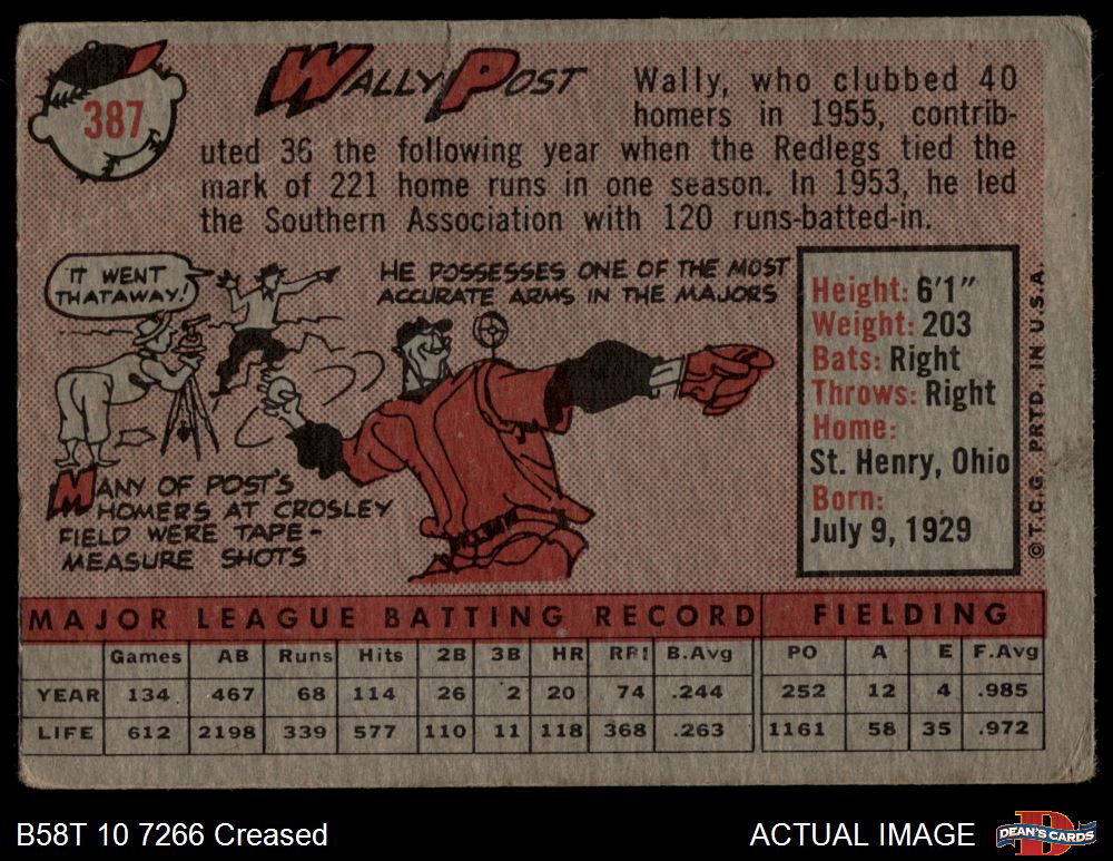 1958 Topps #387 Wally Post 1.5 - FAIR