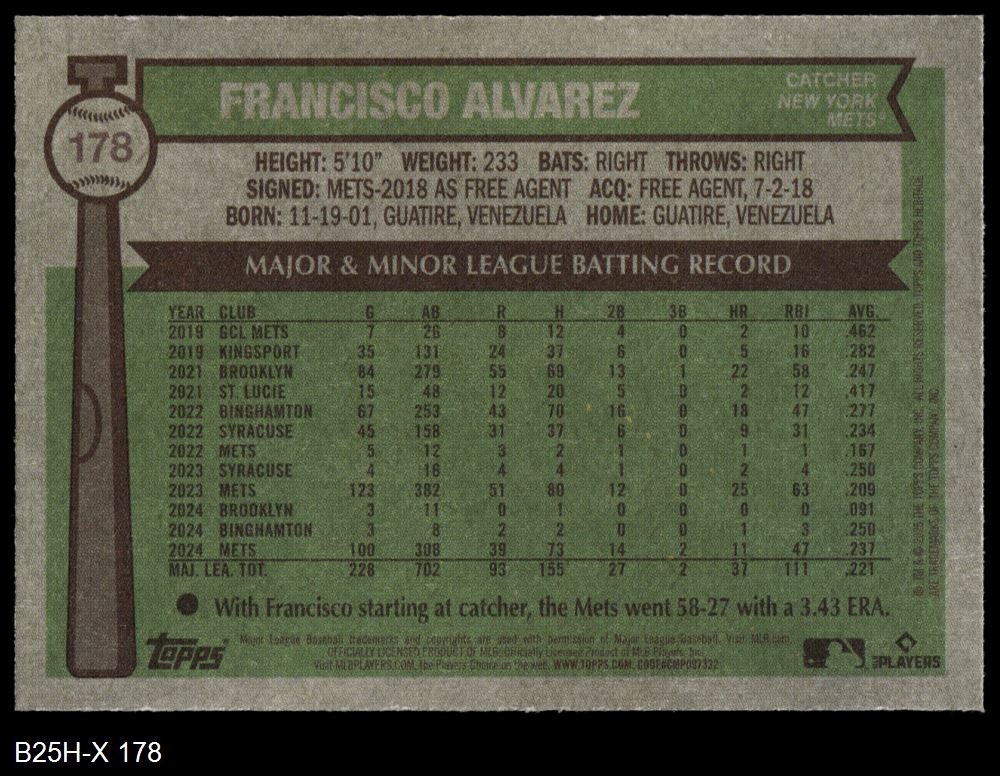 2025 Topps Heritage #178 Francisco Alvarez 8 - NM/MT
