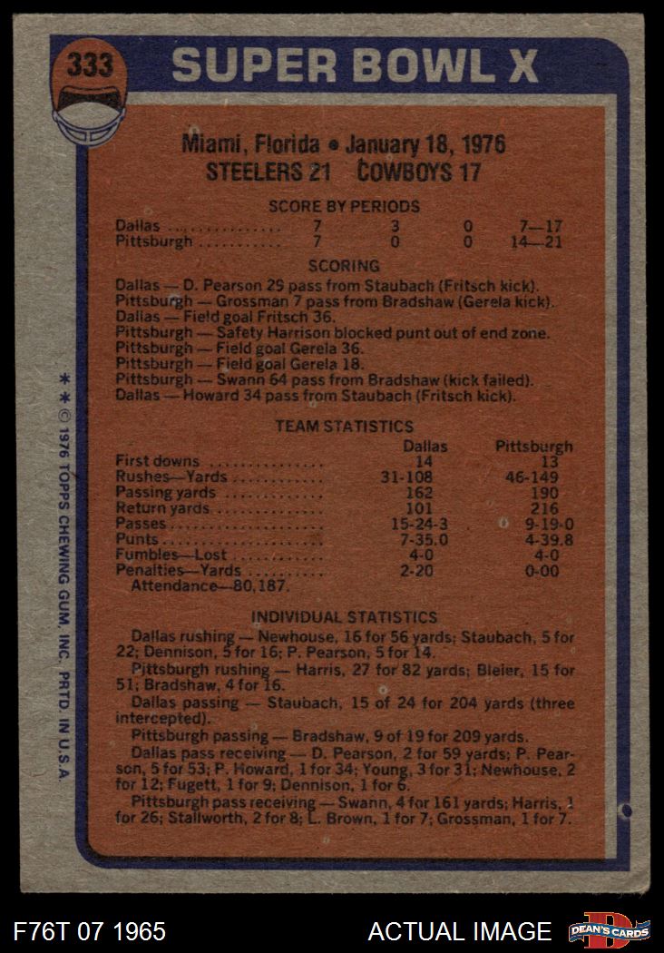 1976 Topps #333 - Terry Bradshaw Super Bowl X 1.5 - FAIR