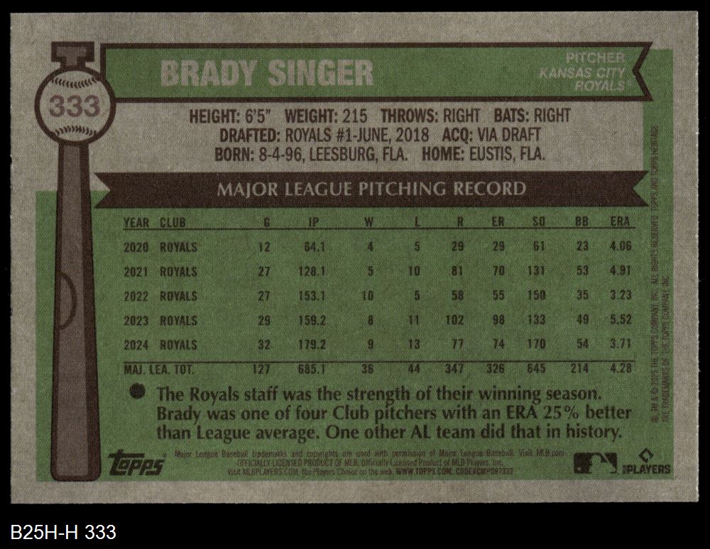 2025 Topps Heritage #333 Brady Singer 8 - NM/MT