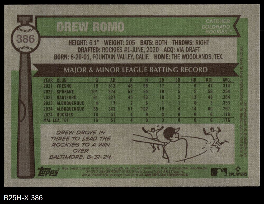 2025 Topps Heritage #386 Drew Romo 8 - NM/MT
