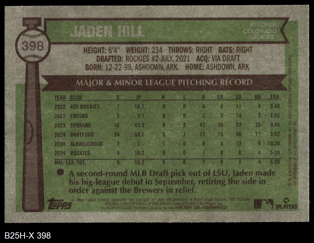 2025 Topps Heritage #398 Jaden Hill 8 - NM/MT