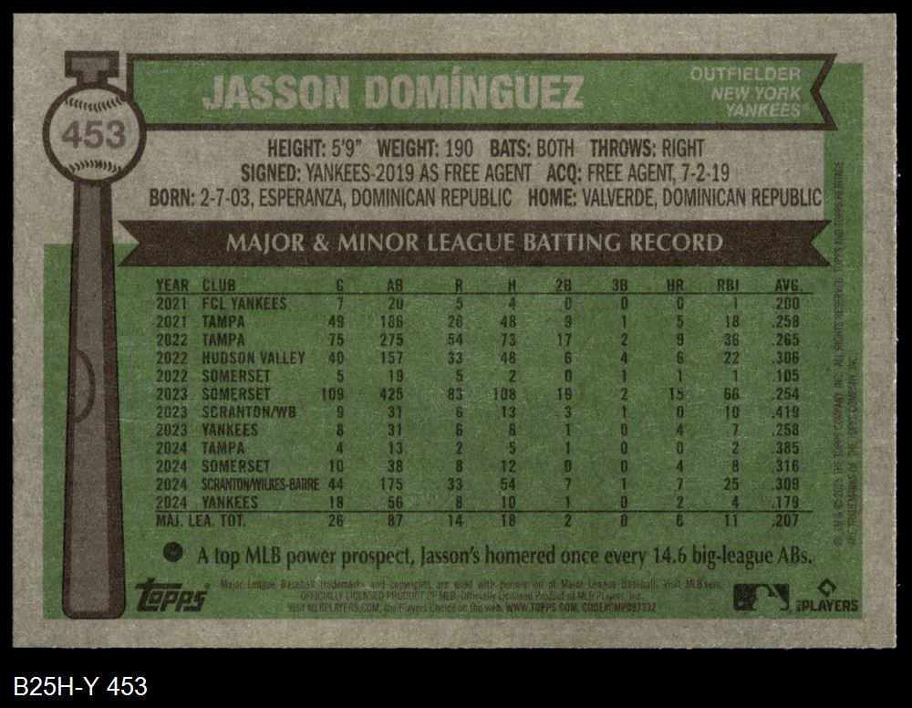 2025 Topps Heritage #453 Jasson Dominguez 8 - NM/MT