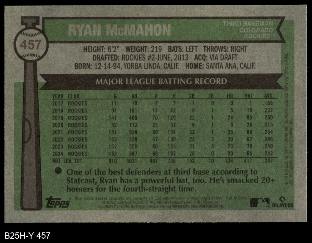 2025 Topps Heritage #457 Ryan McMahon