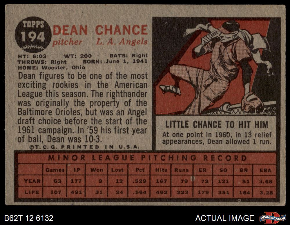 1962 Topps #194 NRM Dean Chance 2 - GOOD