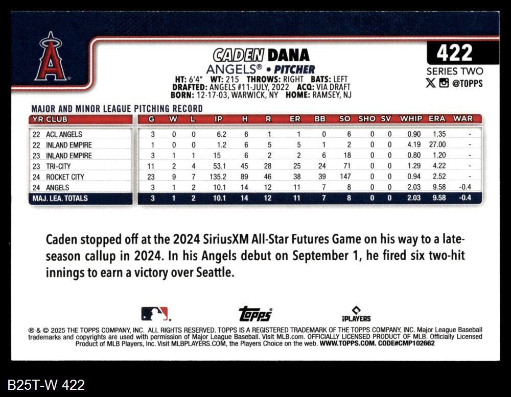 2025 Topps #422 Caden Dana 8 - NM/MT