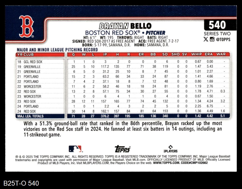 2025 Topps #540 Brayan Bello 8 - NM/MT