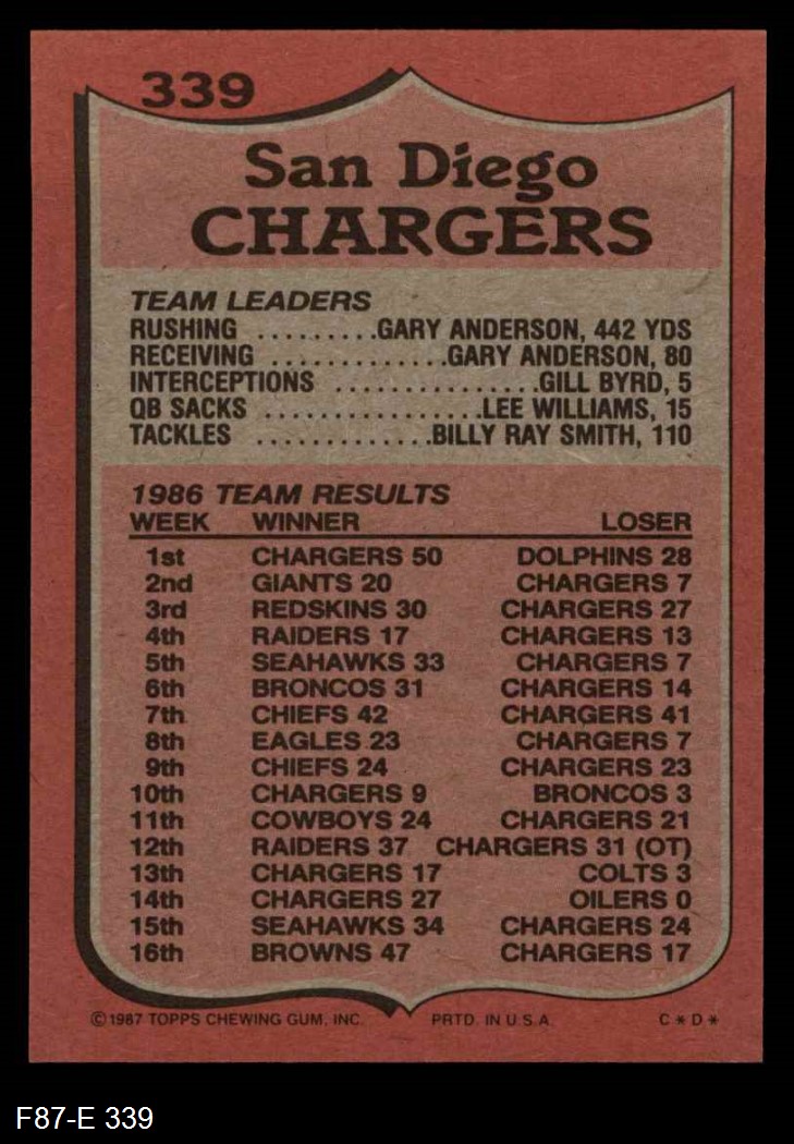 1987 Topps Football Cards (605 available)1987 Topps Chargers (30 available)