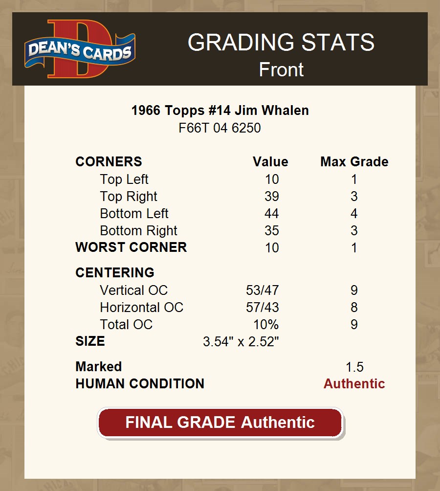 1966 Topps #14 Jim Whalen AUTHENTIC