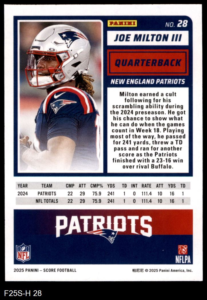 2025 Score #28 Joe Milton III