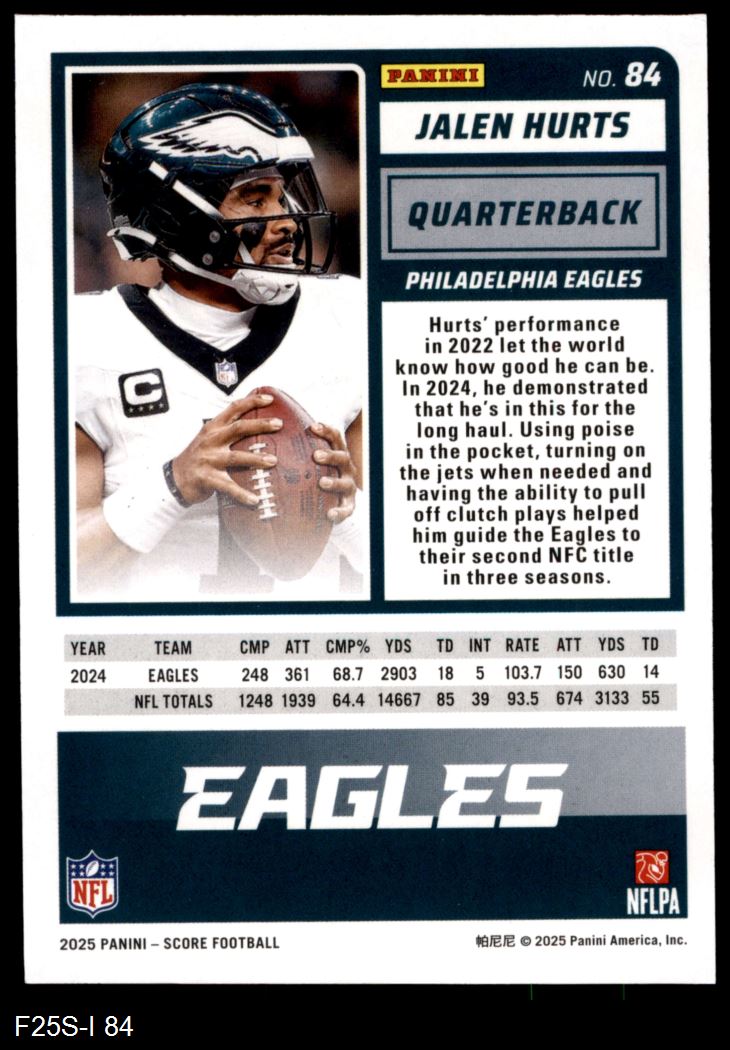 2025 Score #84 Jalen Hurts 8 - NM/MT