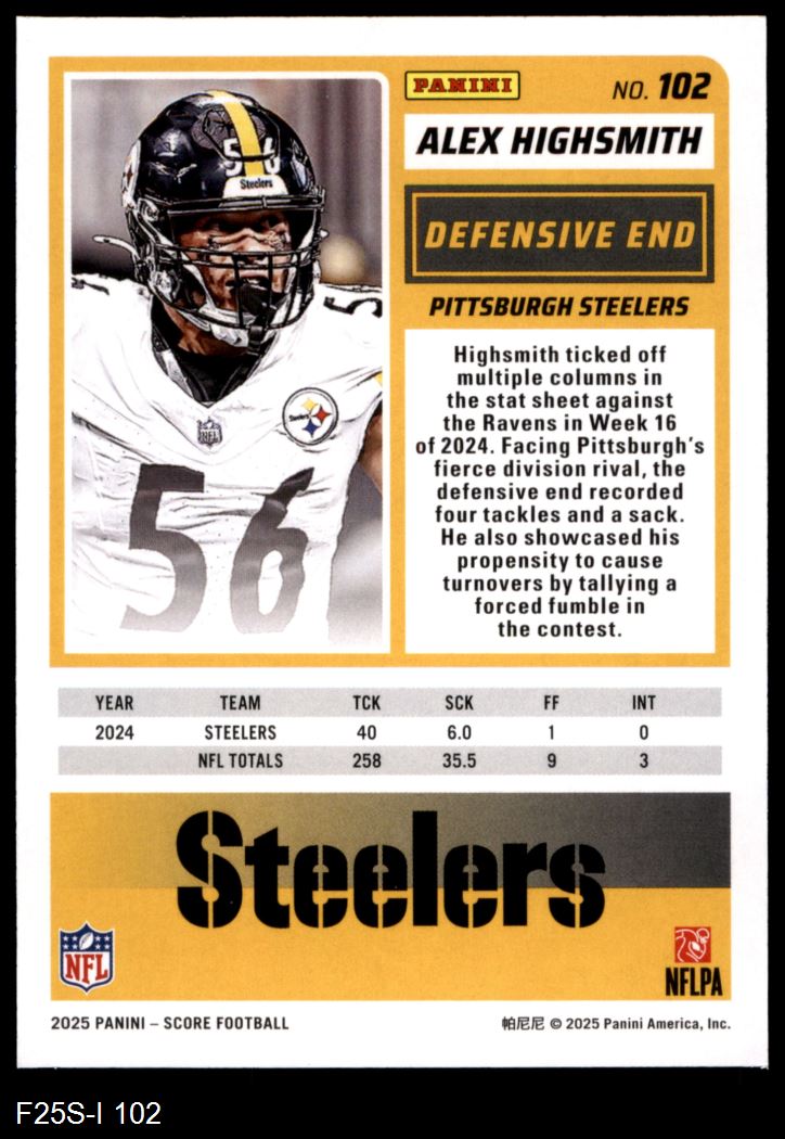 2025 Score #102 Alex Highsmith 8 - NM/MT