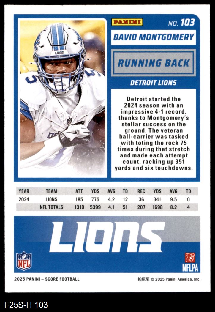 2025 Score #103 David Montgomery 8 - NM/MT