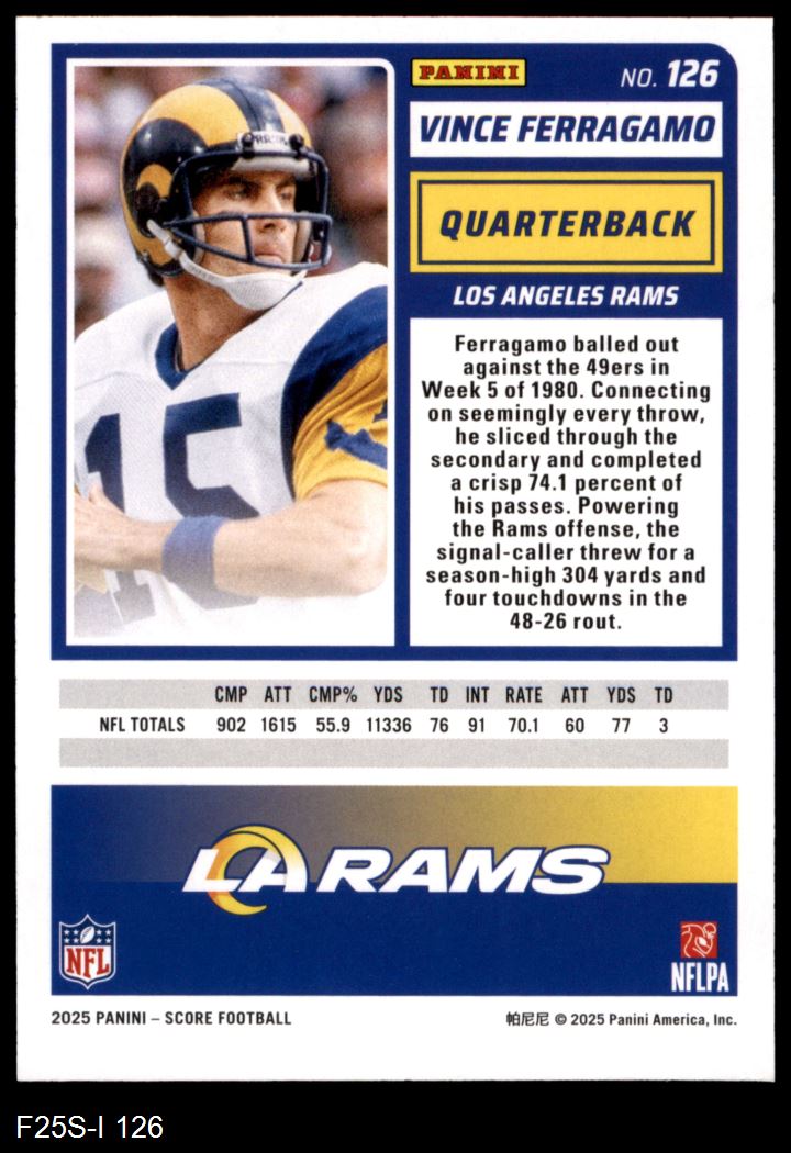 2025 Score #126 Vince Ferragamo