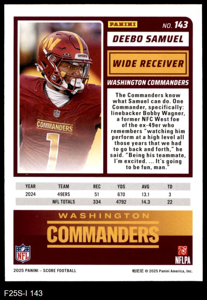 2025 Score #143 Deebo Samuel 8 - NM/MT
