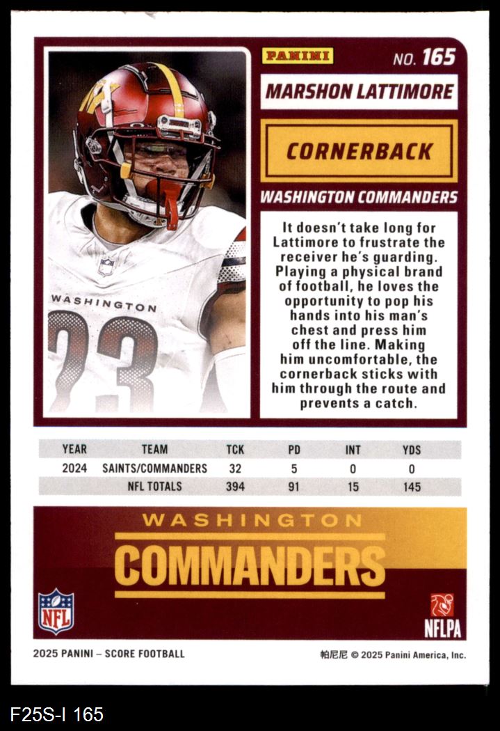 2025 Score #165 Marshon Lattimore 8 - NM/MT
