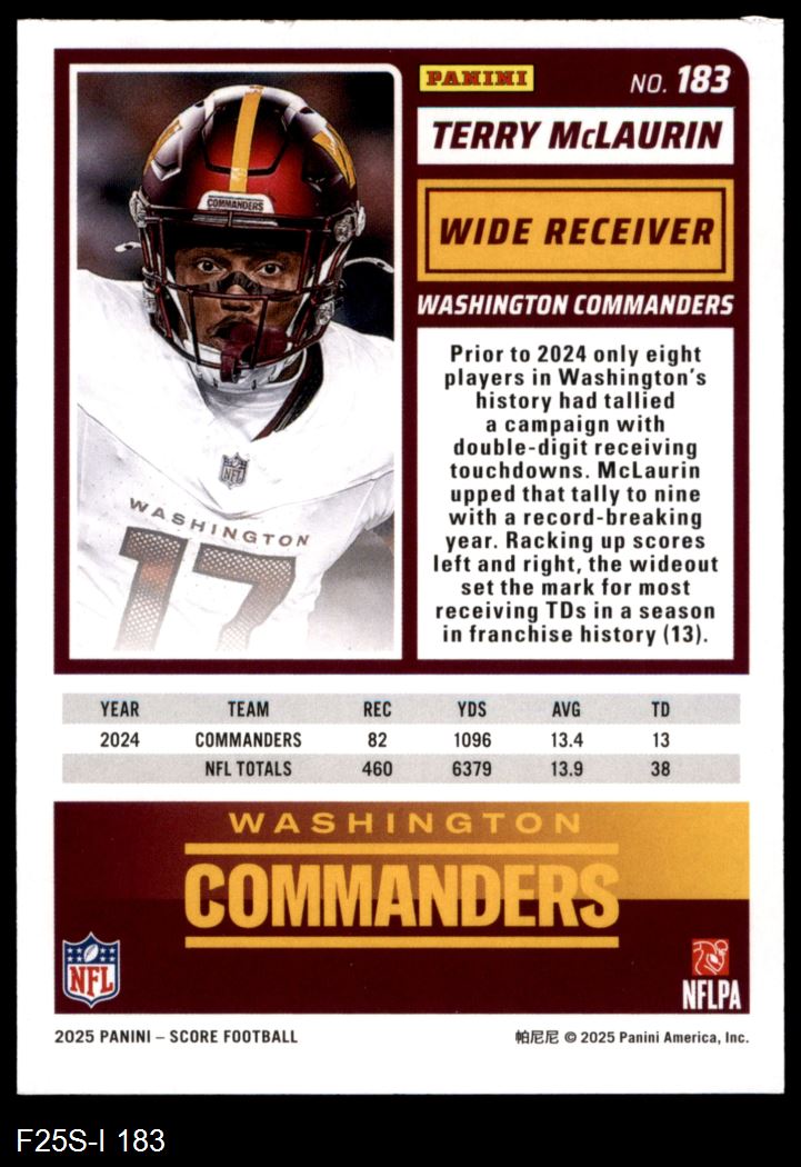 2025 Score #183 Terry McLaurin 8 - NM/MT