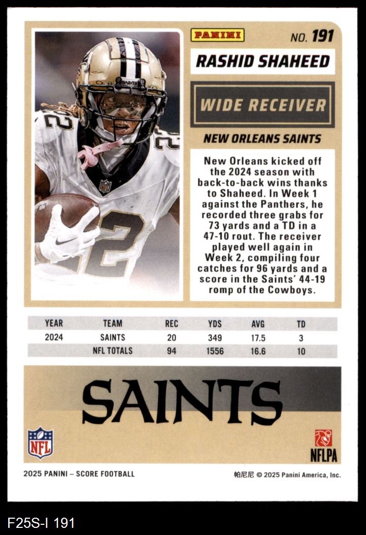 2025 Score #191 Rashid Shaheed 8 - NM/MT