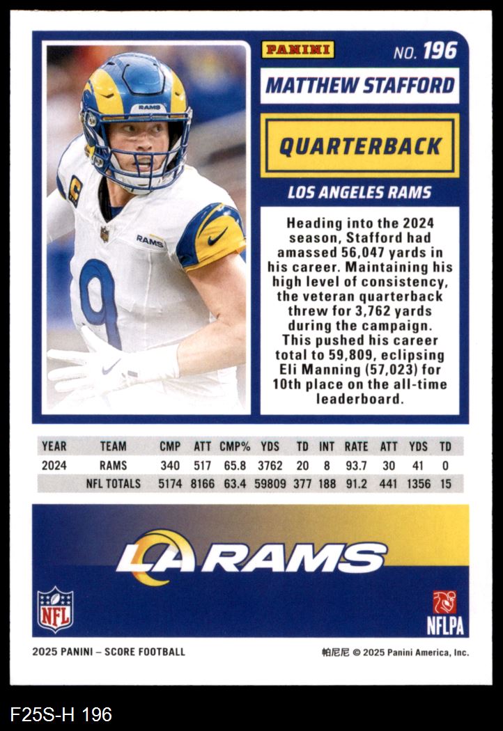 2025 Score #196 Matthew Stafford 8 - NM/MT