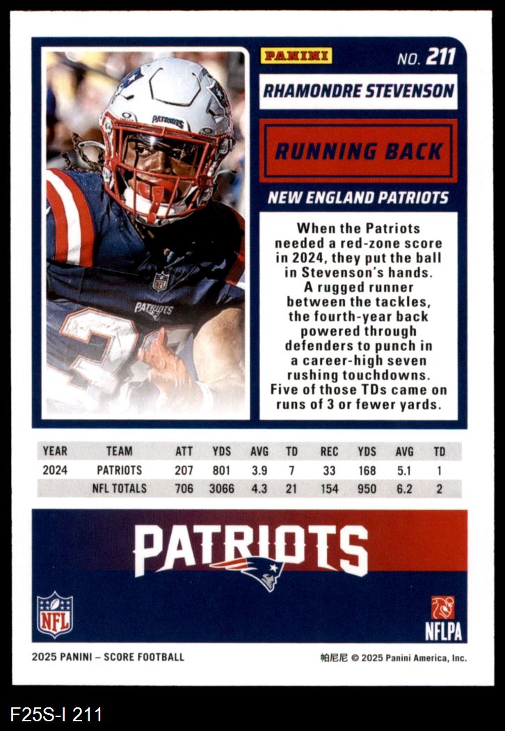2025 Score #211 Rhamondre Stevenson 8 - NM/MT