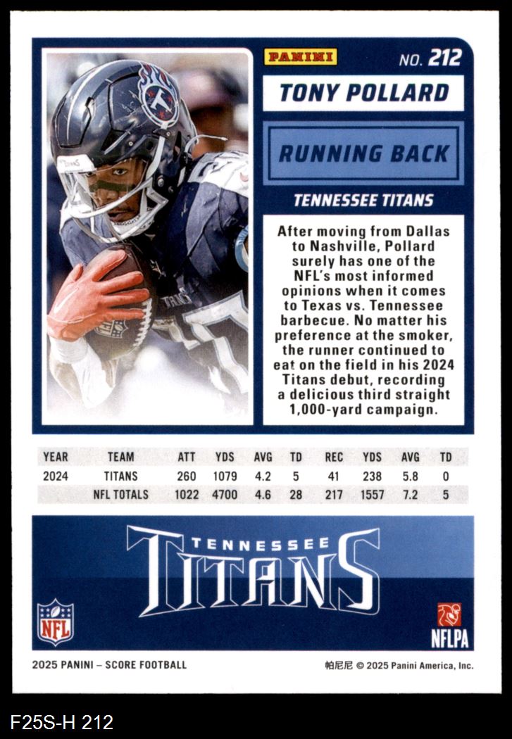 2025 Score #212 Tony Pollard 8 - NM/MT