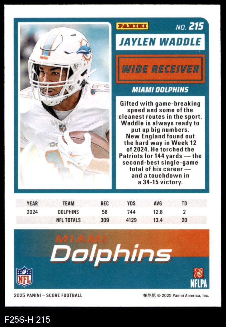 2025 Score #215 Jaylen Waddle 8 - NM/MT