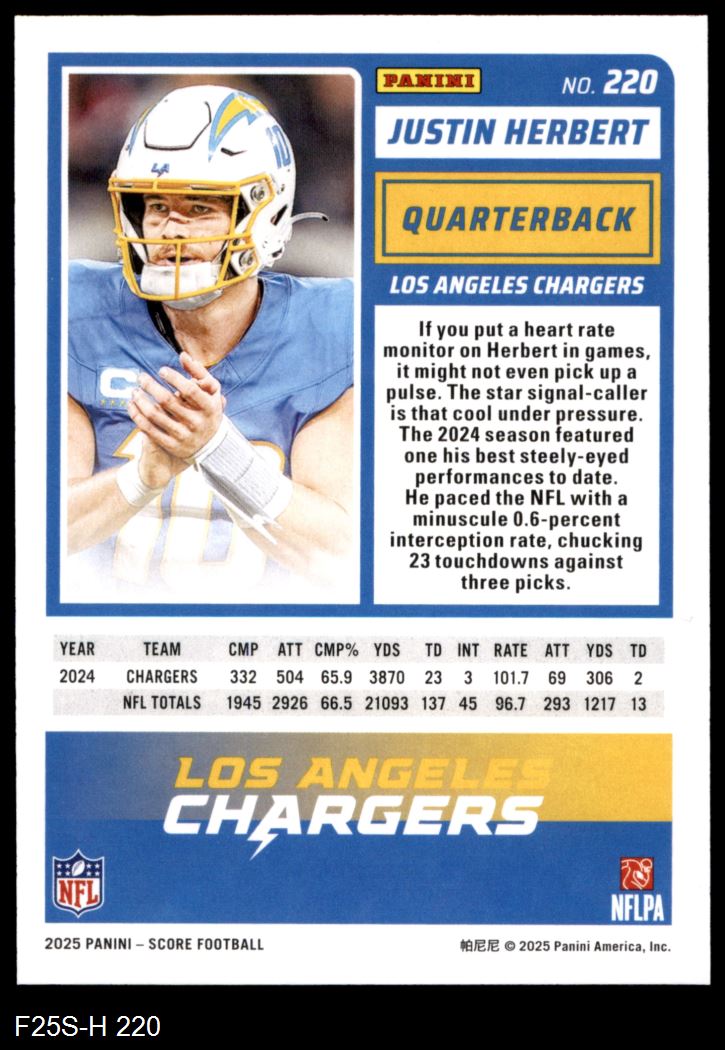 2025 Score #220 Justin Herbert 8 - NM/MT