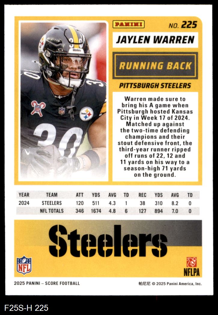 2025 Score #225 Jaylen Warren