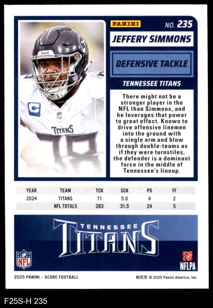 2025 Score #235 Jeffery Simmons 8 - NM/MT
