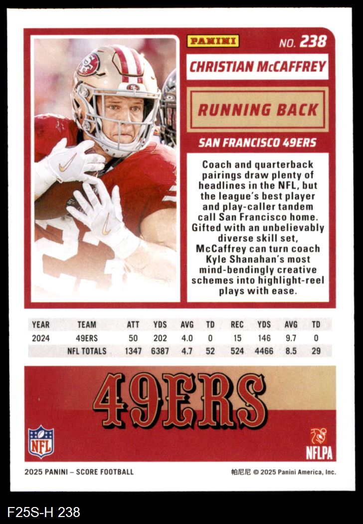 2025 Score #238 Christian McCaffrey 8 - NM/MT