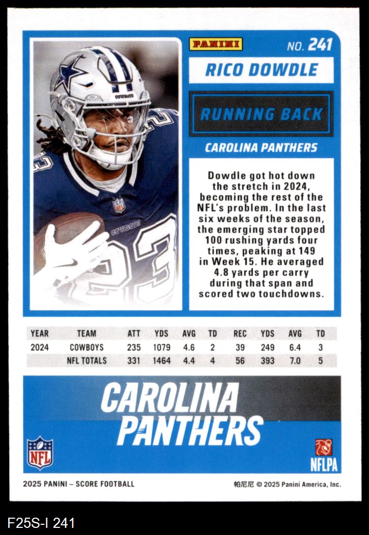 2025 Score #241 Rico Dowdle 8 - NM/MT