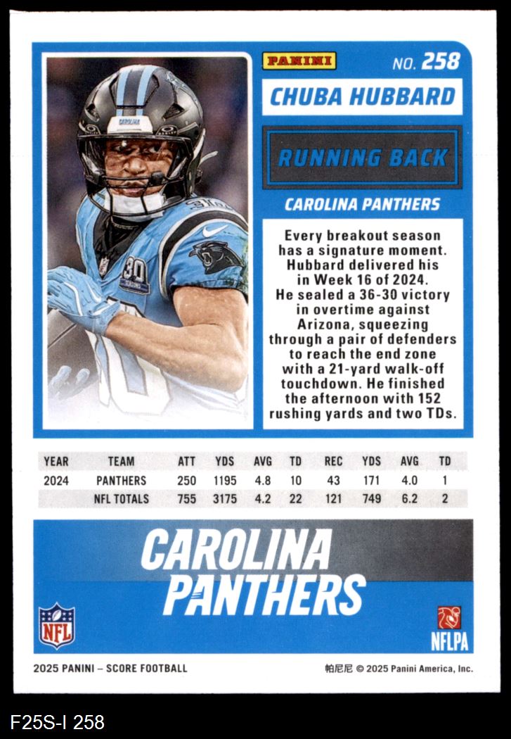 2025 Score #258 Chuba Hubbard 8 - NM/MT