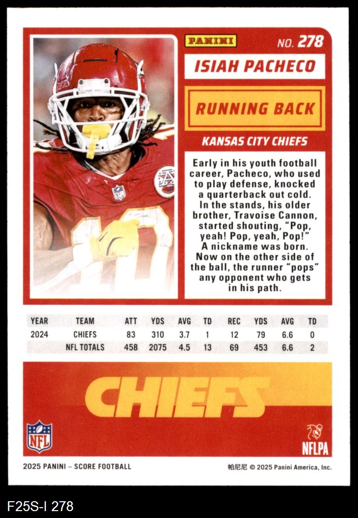 2025 Score #278 Isiah Pacheco 8 - NM/MT