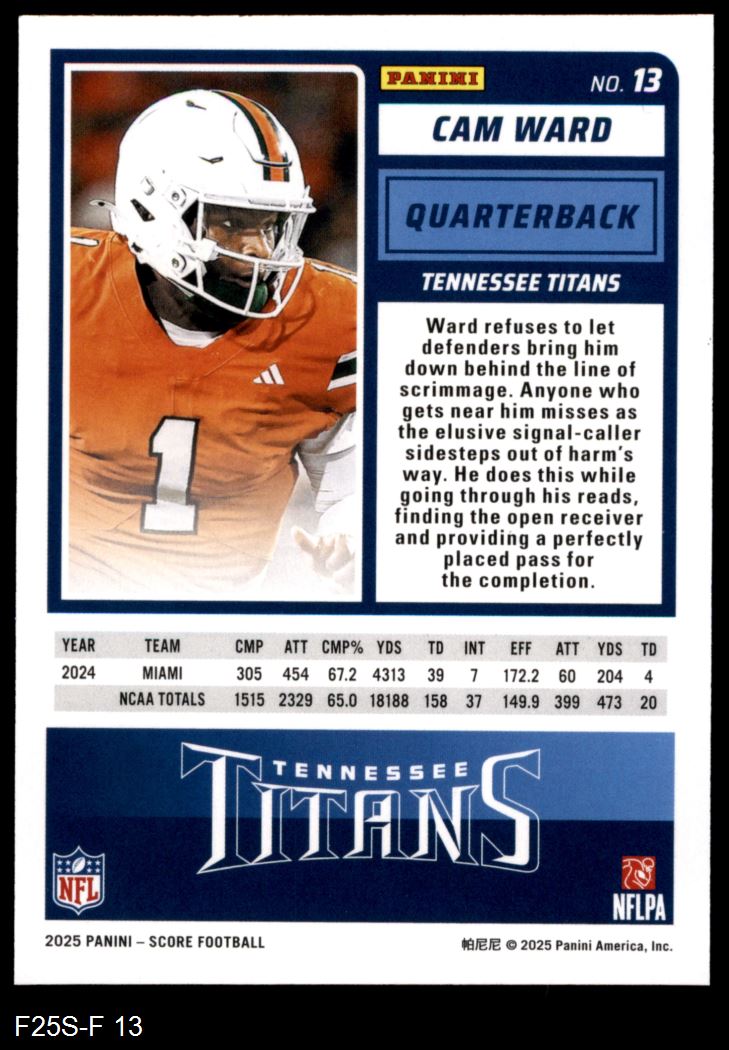 2025 Score #13 RKE Cam Ward 8 - NM/MT