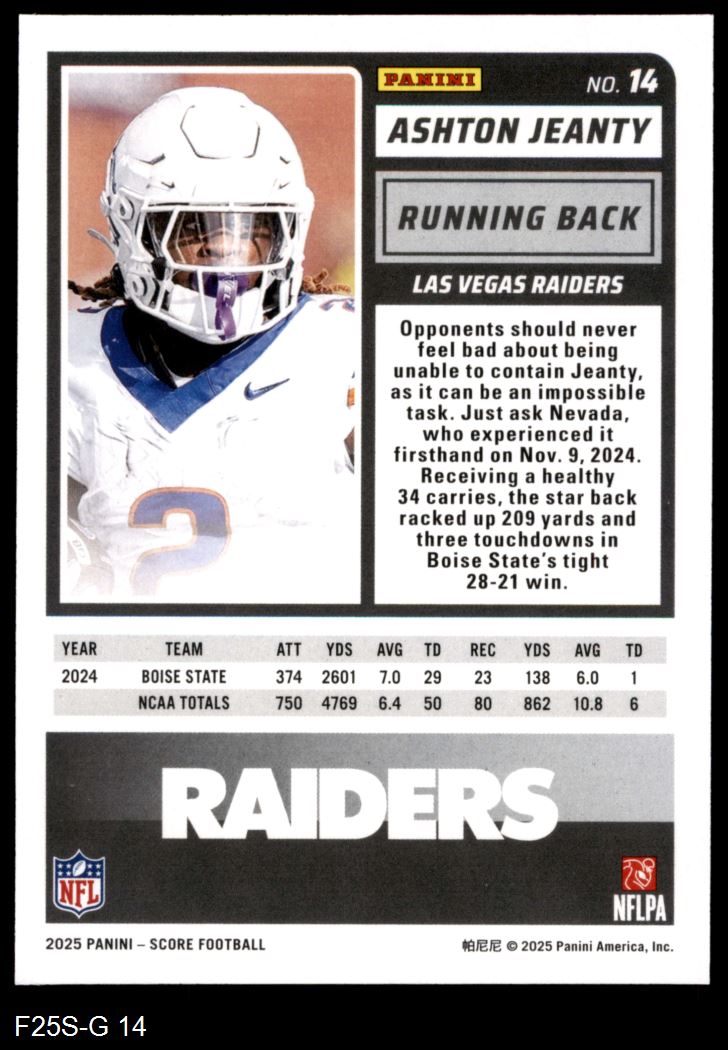 2025 Score #14 RKE Ashton Jeanty 8 - NM/MT