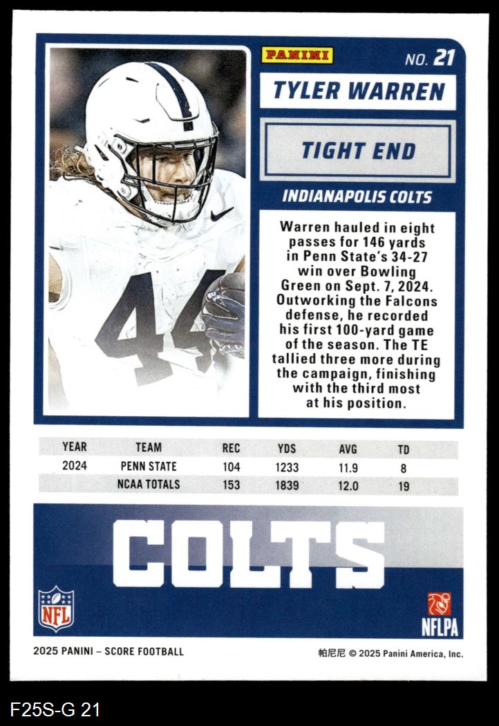 2025 Score #21 RKE Tyler Warren 8 - NM/MT
