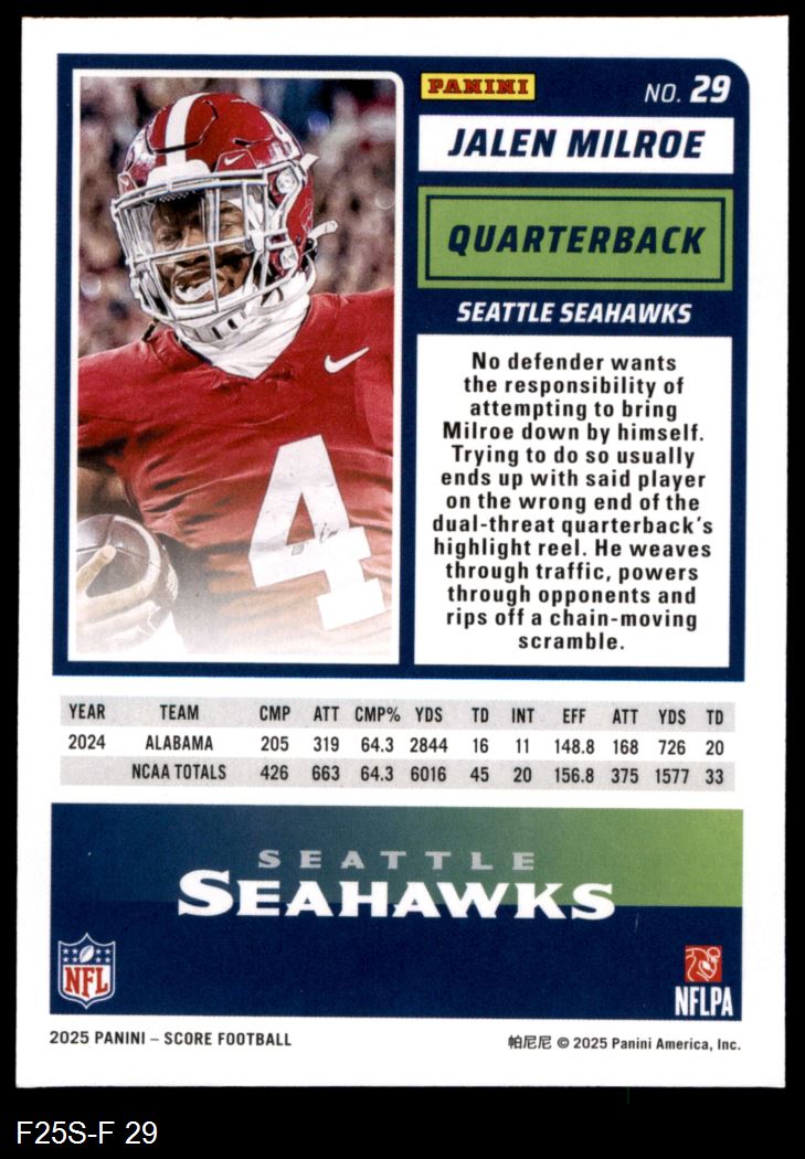 2025 Score #29 RKE Jalen Milroe 8 - NM/MT