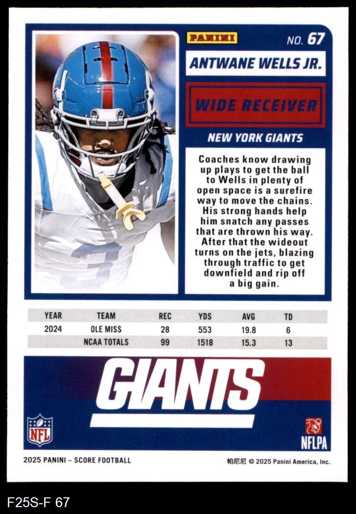 2025 Score #67 RKE Antwane Wells Jr. 8 - NM/MT