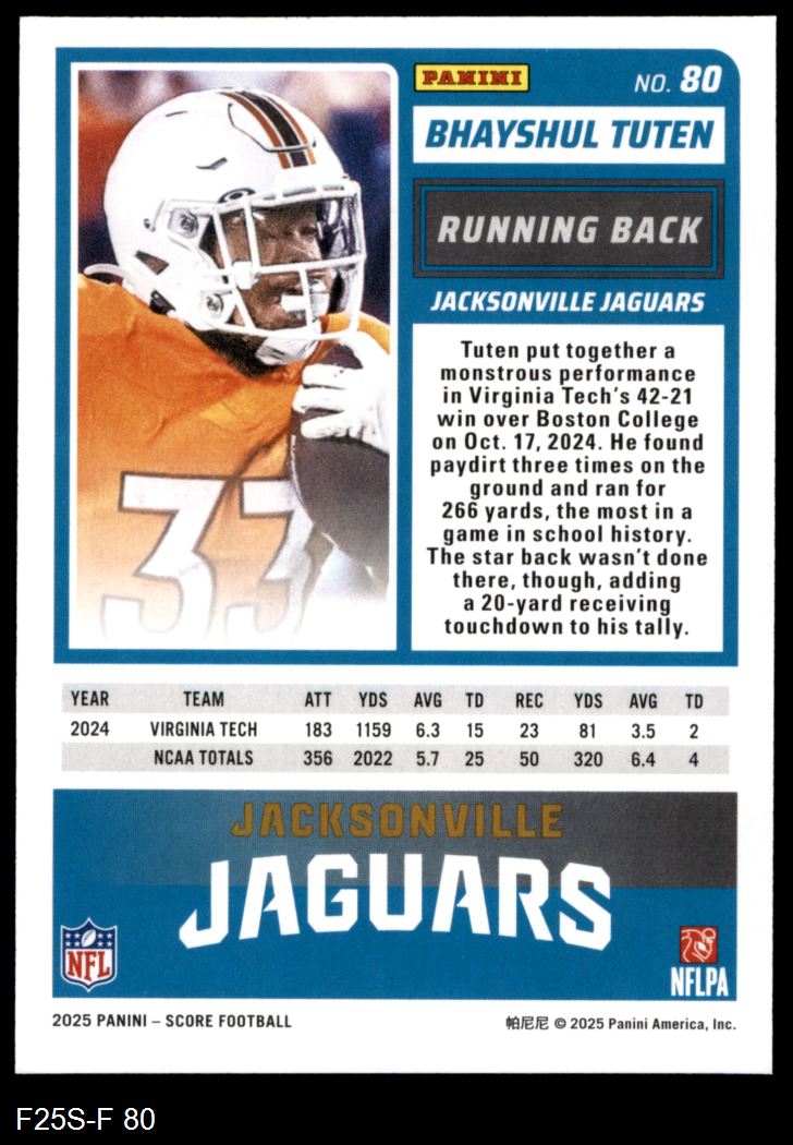 2025 Score #80 RKE Bhayshul Tuten 8 - NM/MT