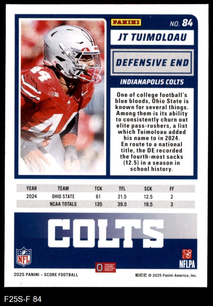 2025 Score #84 RKE JT Tuimoloau 8 - NM/MT