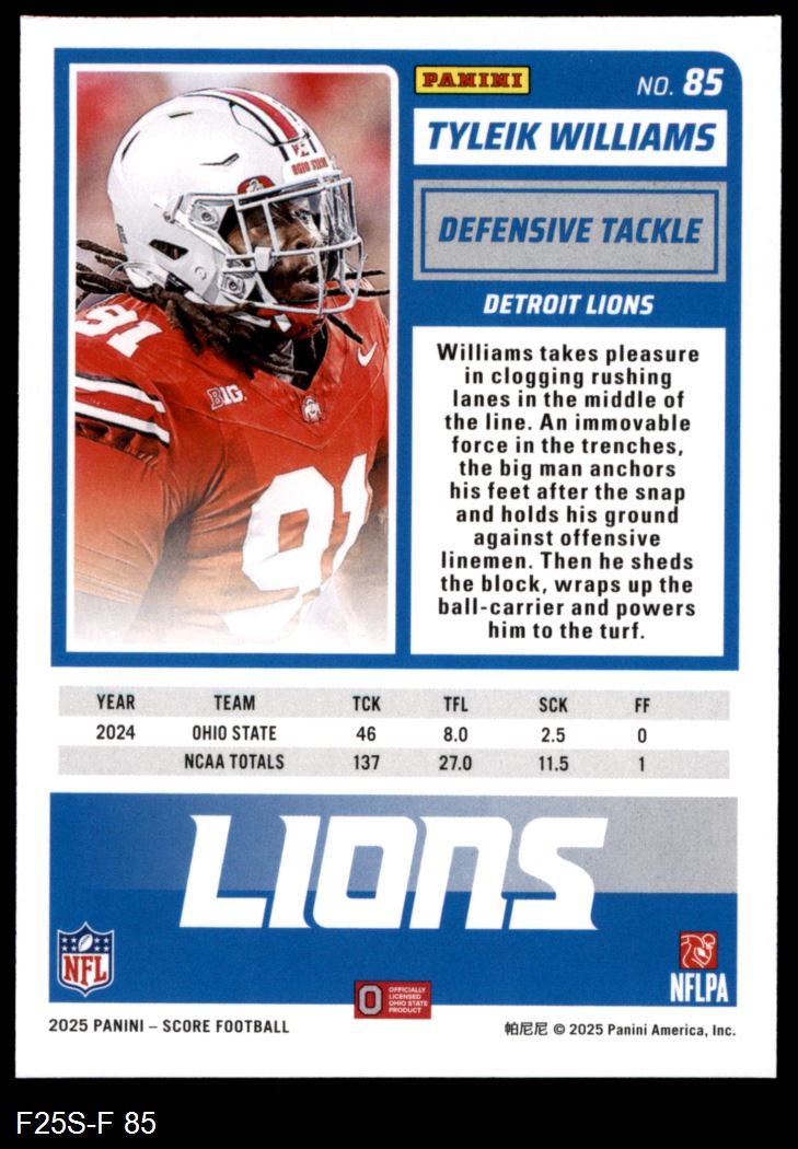2025 Panini Score (1,653 available)2025 Score Lions (45 available)