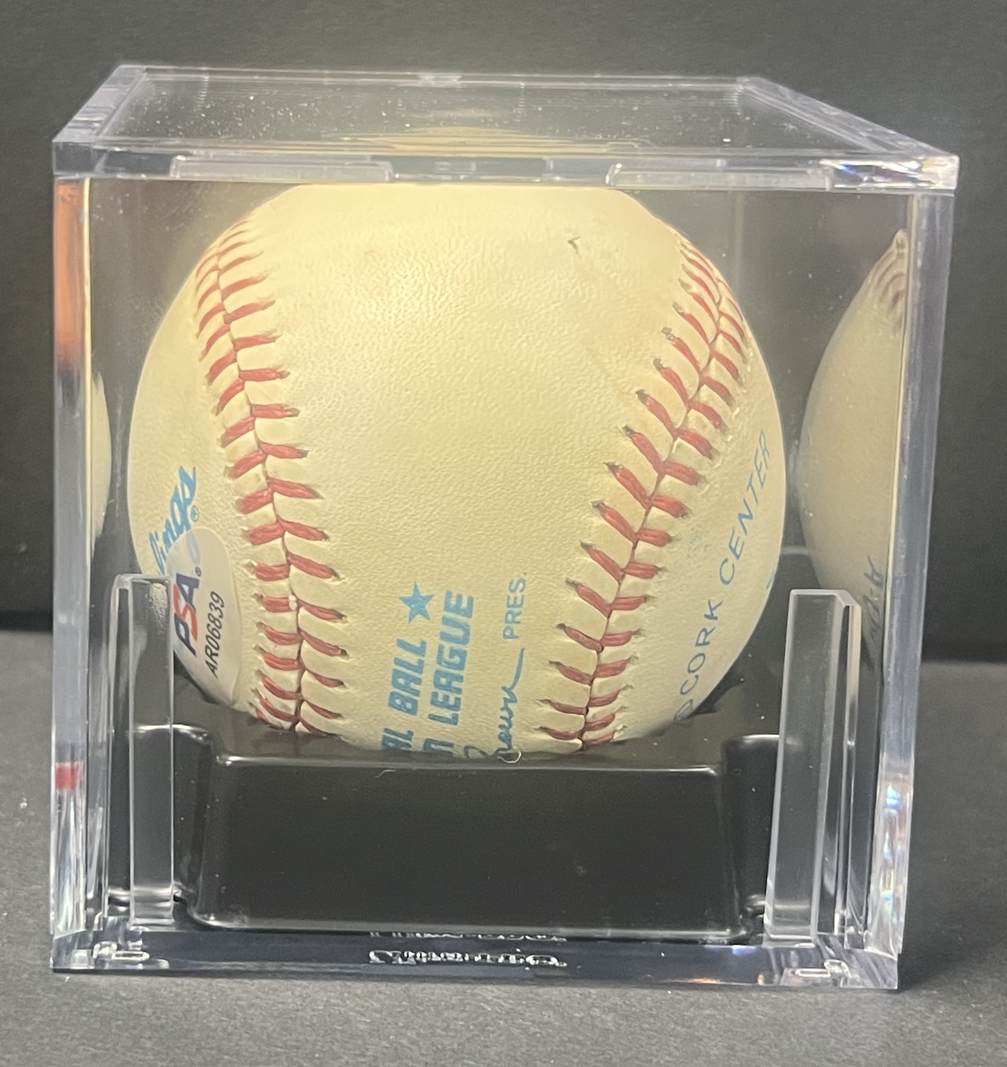 This Mickey Mantle autographed baseball has been authenticated and encased by PSA and comes with the Letter of Authenticity pictured.