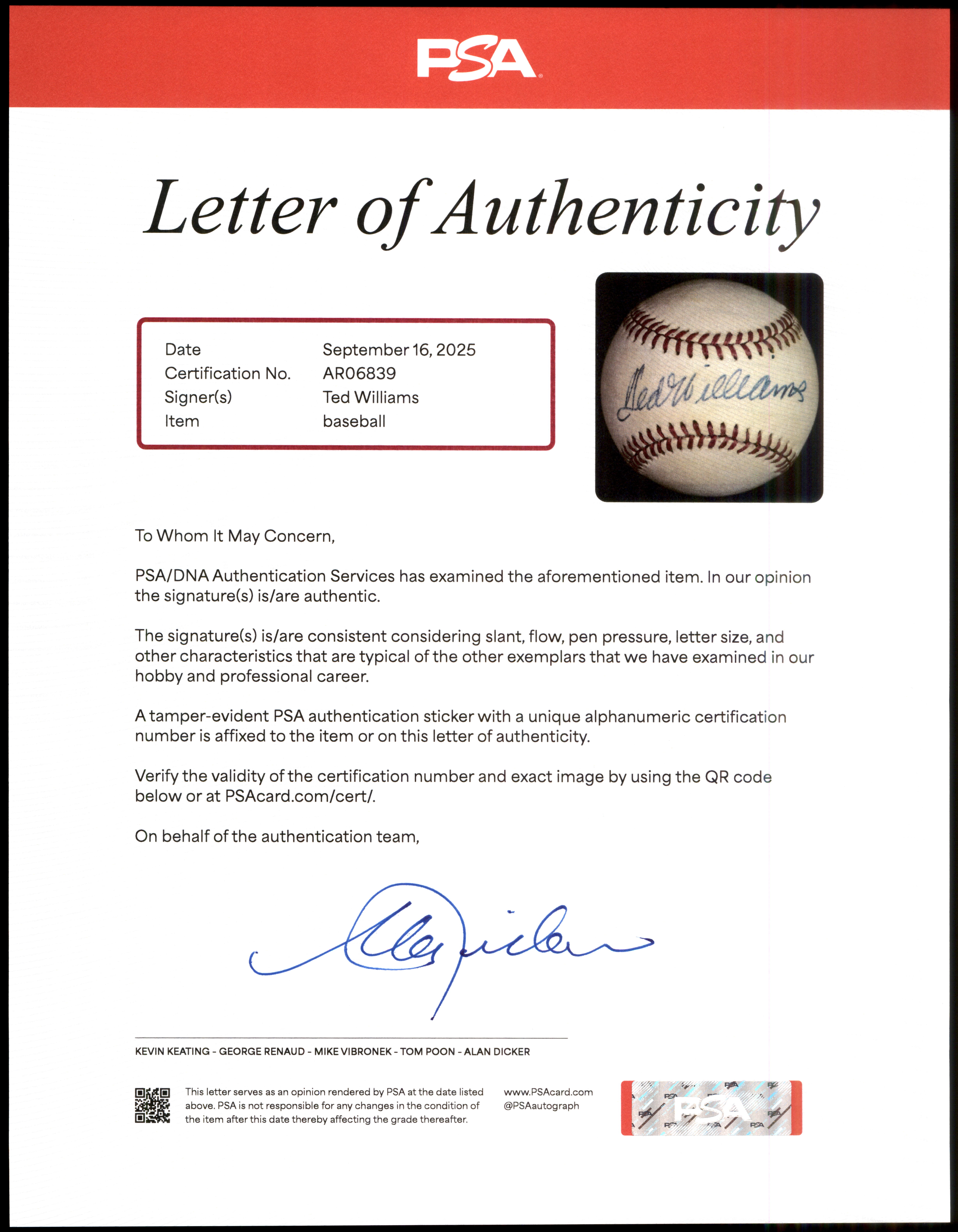 - Ted Williams Autographed Baseball w / PSA LOA AUTOGRAPHED