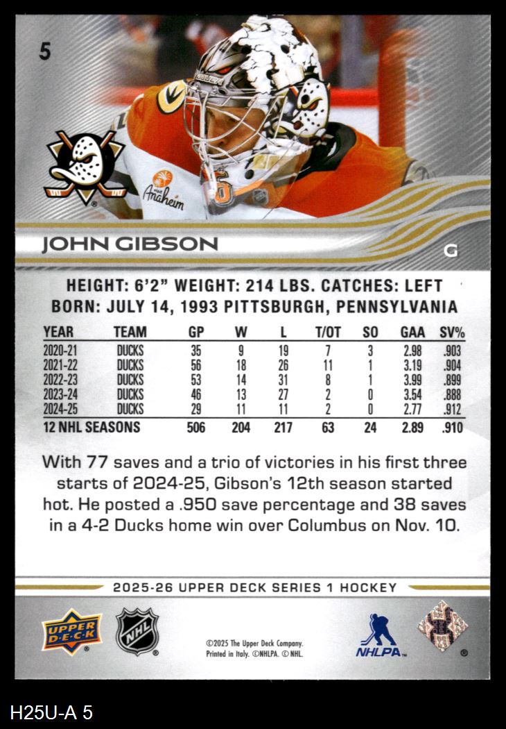 2025 Upper Deck #5 John Gibson 8 - NM/MT