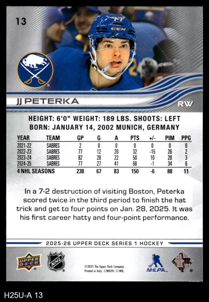 2025 Upper Deck #13 JJ Peterka 8 - NM/MT