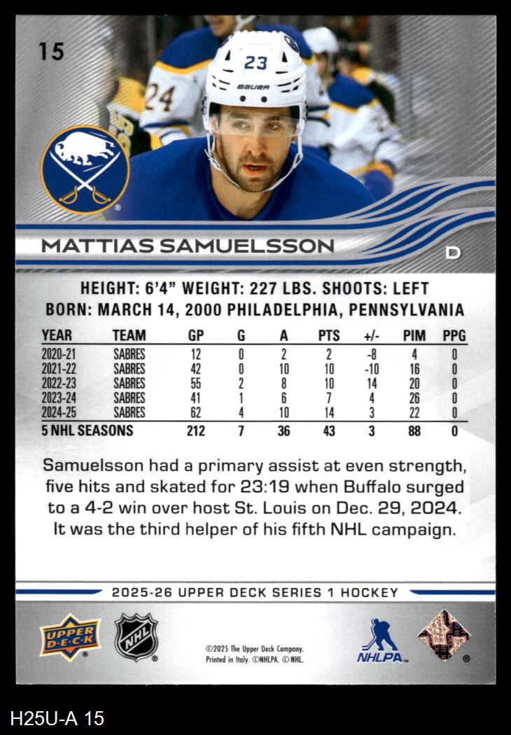 2025 Upper Deck #15 Mattias Samuelsson 8 - NM/MT